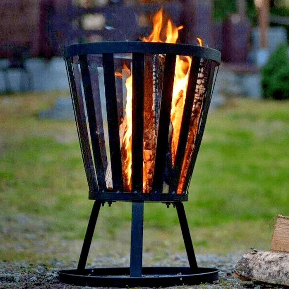 Crafted from durable steel, the brazier is designed to withstand high temperatures and all types of weather, ensuring long-lasting performance. Its open slatted sides provide excellent airflow, allowing for a steady, roaring flame that enhances both warmth and atmosphere.