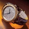 The Morgan Silver Dollar Watch features a genuine Morgan silver dollar that has been skillfully cut cross-sectionally, set inside a coin-edged case finished in luxurious gold. Master engraver George Morgan’s radiant profile of Lady Liberty provides a striking backdrop for the blued, Breguet-style hands. Etched Roman numerals along the edge of the dial and a sapphire crown add the final elegant touches. The Morgan Watch fastens with a brown, crocodile-grain leather strap and gold-finished buckle. Don’t miss this chance to secure your own limited-edition masterpiece.