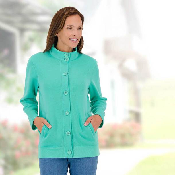 Crafted from a durable blend of 85% polyester and 15% cotton, the Casual Jacket is easy to care for and long-lasting. Available in duck egg or jade, it’s a versatile wardrobe essential for cooler weather.