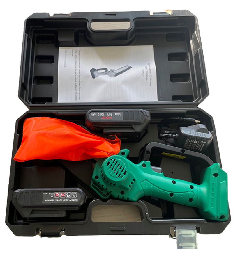 Powered by a high-performance rechargeable battery, this mini chainsaw delivers strong cutting speed and consistent power for small to medium cutting tasks. The sharp chain and efficient motor help provide smooth cutting performance, while the ergonomic handle and compact body support easy one-handed operation. Simple controls and quick start functionality make it user-friendly for regular use.