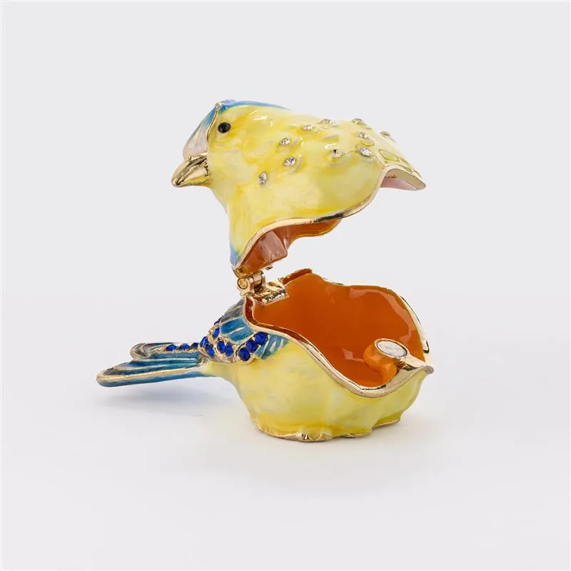 Perhaps you or someone you love can attest to the thrill of glimpsing a kingfisher swoop down for his catch, watching blue jays jostle at the backyard feeder, or hearing a crimson cardinal suddenly burst into song. The universal joy birds inspire is why we’re delighted to unveil our Friends of a Feather Goldfinch Trinket Box, a bejeweled tribute to those jewels of the animal kingdom. Handmade in durable pewter and finished with sparkling enamel and Austrian crystals, this exquisitely rendered bird hinges open to safeguard your treasures.