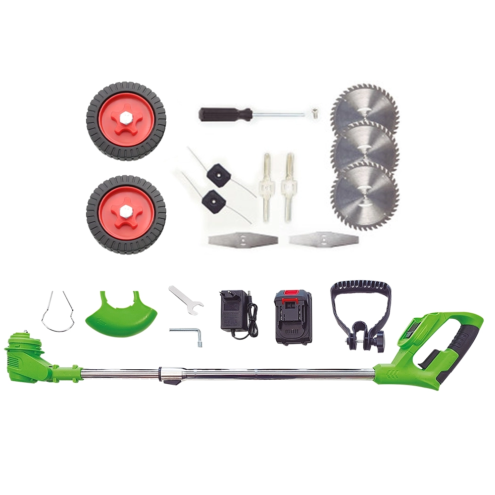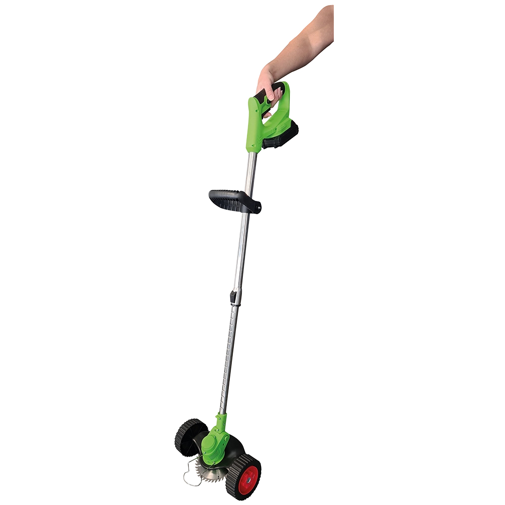 The set also includes a support wheel for smooth edging, a handle for added control, and assembly tools to make blade changes quick and secure. The pivoting head gives you precise angles, while the telescopic shaft adjusts to your height for full comfort and control.