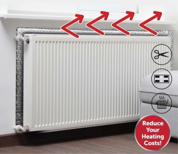 The foil is designed for use with wall-mounted radiators. Effectiveness may vary depending on wall type and installation.