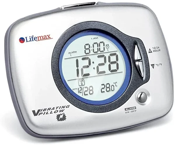 This portable clock features two alarms than you can set to vibrate to wake even the deepest sleeper, without disturbing your slumbering partner.