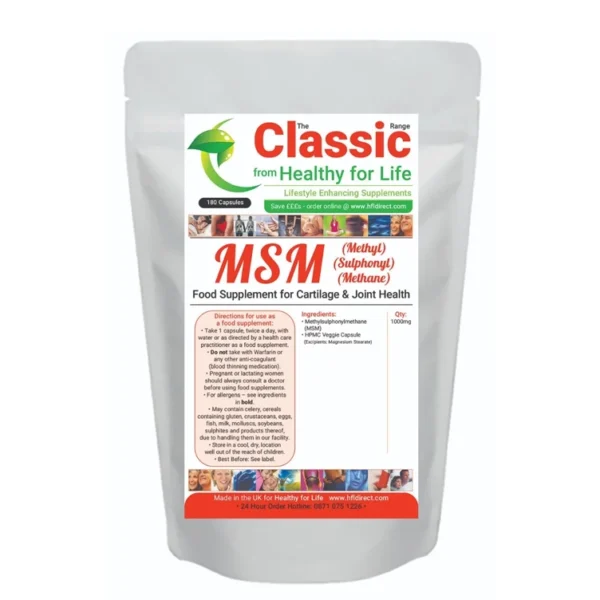Experience the natural benefits of Methyl Sulphonyl Methane (MSM), a source of naturally occurring sulphur crucial for healthy cartilage production and overall well-being. Used as a potent anti-inflammatory, MSM is renowned for its effectiveness in treating conditions like osteoarthritis, rheumatoid arthritis, tendonitis, and more.