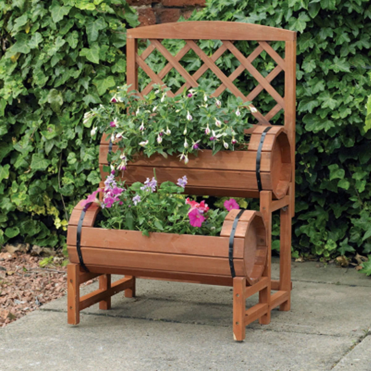 For a more compact option, consider our Wooden Twin Barrel Planter Climber. With its tiered design, this planter allows you to grow different types of plants in each barrel, creating a dynamic and visually appealing display. Made from pressure-treated and stained wood, it offers durability and longevity, ensuring years of enjoyment.