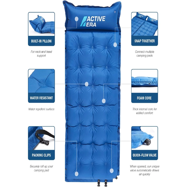 The extra thick padding at the core of the camping pad makes it feel like you’re sleeping on a regular mattress, providing unparalleled comfort even in the great outdoors. Whether you’re camping, hiking, or just need an extra bed on the go, the Active Era Self-Inflating Camping Pad ensures you rest in luxury.