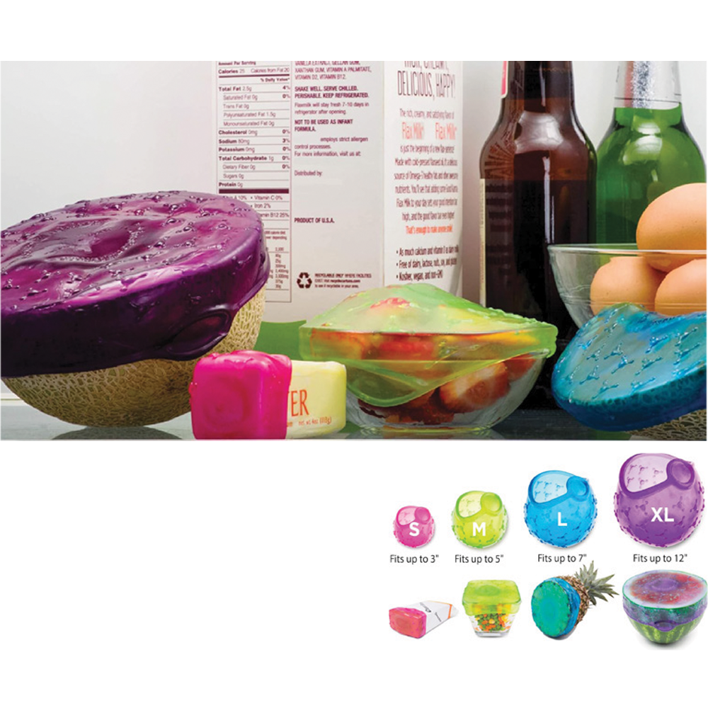 4 self-adjusting silicone covers in assorted sizes