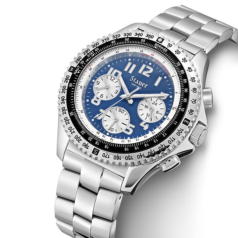 The Universal’s rotating bezel also features a tachymeter for measuring speed and distance, putting you in control of any high-pressure international situation. The Universal is your stylish solution to a life lived at full speed and in one too