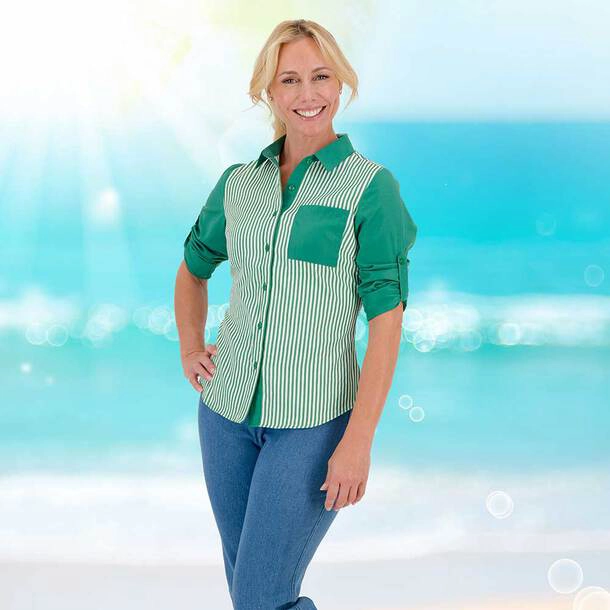 Perfect for summer and winter, Easylife’s Striped Shirt is a wardrobe essential for mature women seeking casual style. Its bold mix of stripes and solid colours adds a vibrant, confident touch to any outfit.