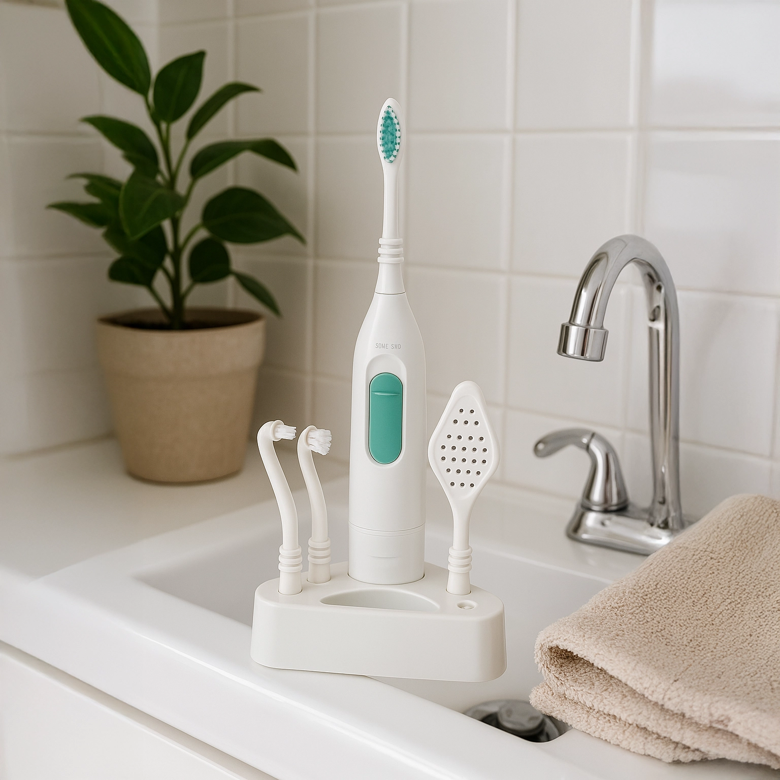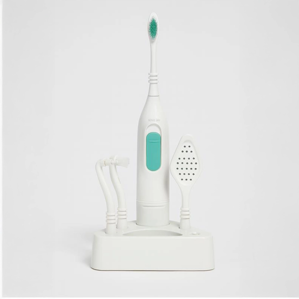 Keep your teeth clean and healthy with the amazing 4-in-1 Tooth Saviour. This comprehensive kit provides everything you need for a thorough oral care routine. The Tooth Saviour includes a Power Handle, Saviour Gum Stimulator, Saviour Interdental Brush, Saviour Toothbrush Attachment, Saviour Tongue Cleaner, and a convenient Storage Base.
